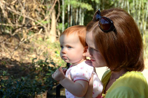 Isn't it fun to see our shades of red next to each other?! Her hair is definitely brighter than mine. Although my auburn locks have darkened with age, my dad tells me that my hair was never as bright as hers, even as a baby. Her little carrot top head and blue eyes make me smile every day.